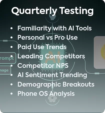 Captures evolving consumer sentiment, adoption, and usage of AI, including uptake of paid AI offerings.