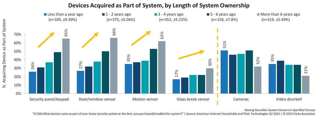 • Security system ownership rose from 31% (2022) to 34% (2025), while device-only adoption grew from 7% to 14%.