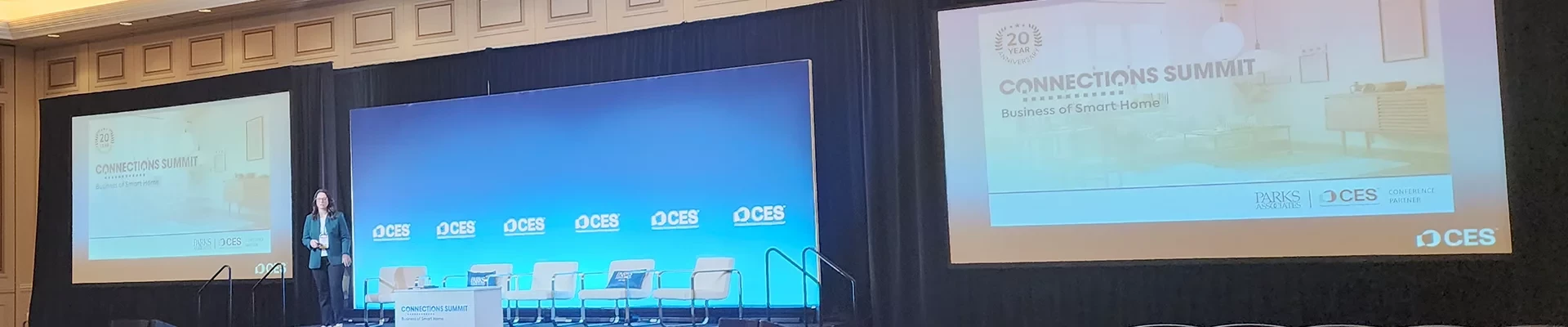 Parks Associates analyst team attended the 58th annual Consumer Electronics Show (CES), which kicks off the new year in tech every January with over 4,000 exhibitors and nearly 150,000 attendees. We also hosted our 20th Annual CONNECTIONS Summit at CES, the official smart home partner of the show, discussing the most impactful dynamics shaping the connected home, including AI advancements, the shifting home security market, new approaches to home energy management, the expansion of the multifamily market, and more.